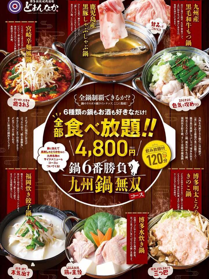 6種の九州鍋が食べ放題!