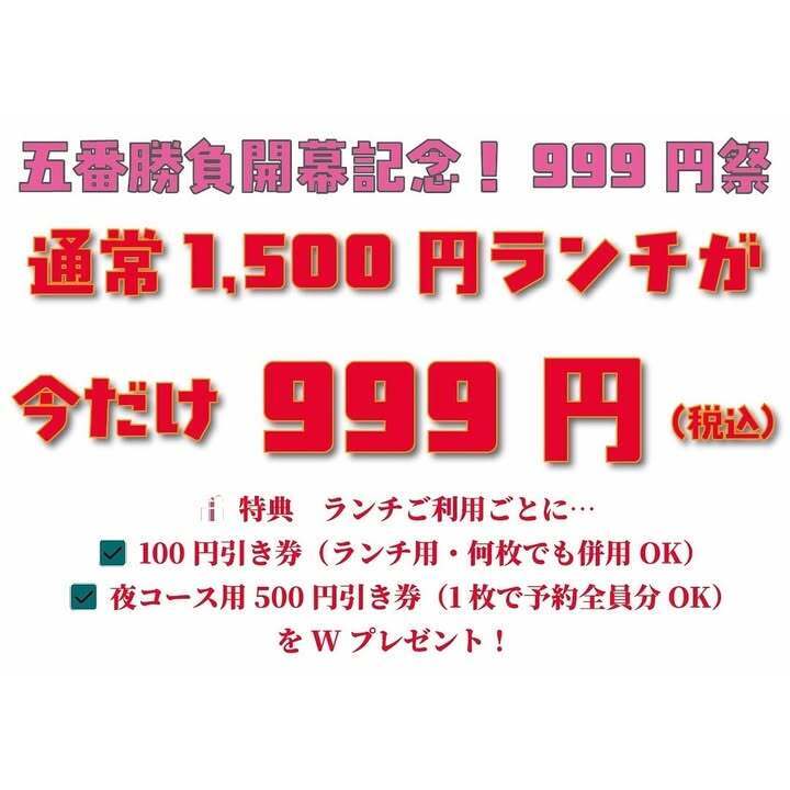 🎉 五番勝負開幕記念!999円祭 9/13(土)〜