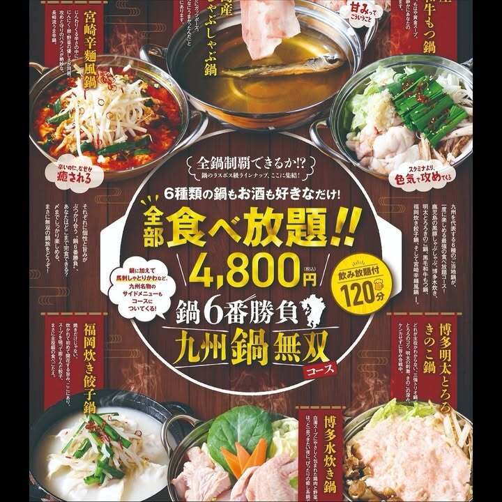 🍲 夜は「鍋6番勝負!九州鍋無双コース」